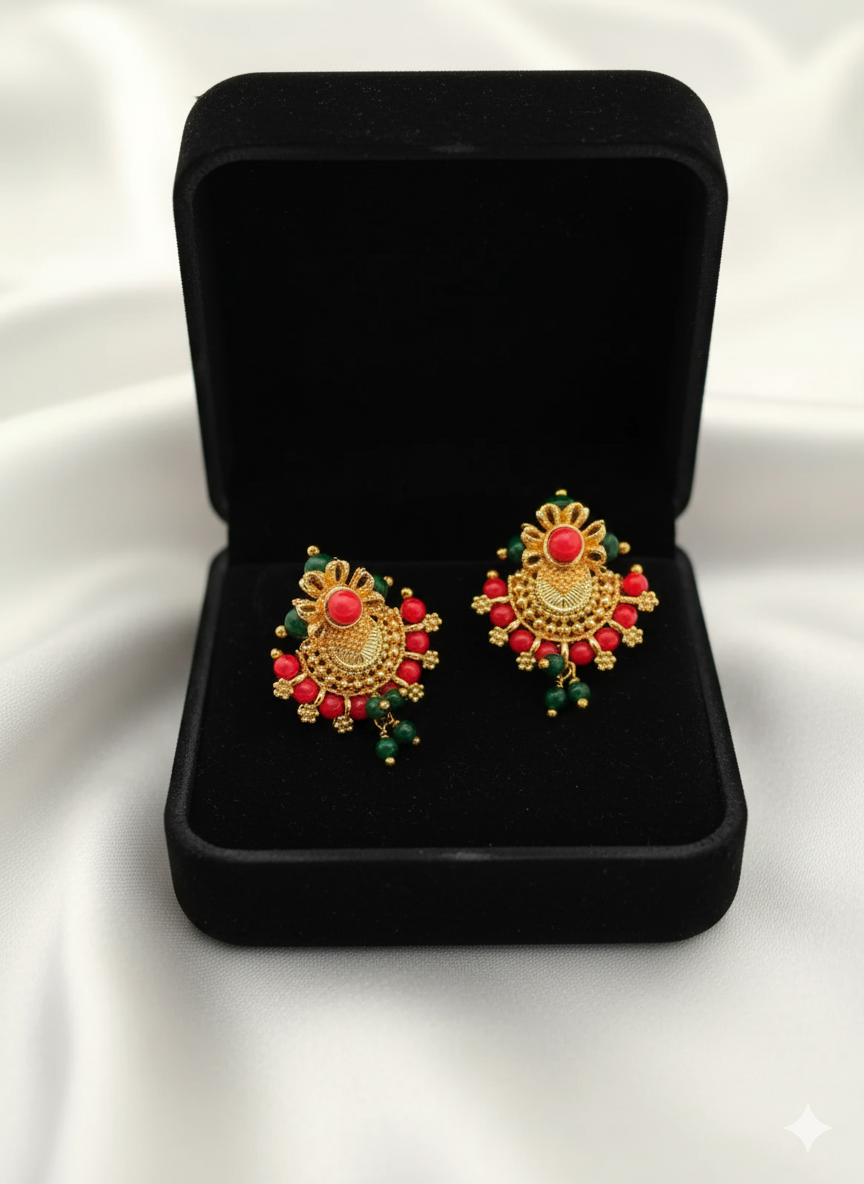 Coral+Jade Unique SouthIndian Screw Based Stud Earring